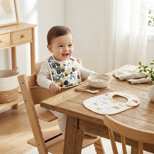 Notre modèle ultra-absorbant combine une surface imperméable avec une couche supérieure qui absorbe les liquides. Cette double protection est parfaite pour les bébés baveux ou les repas particulièrement mouvementés.